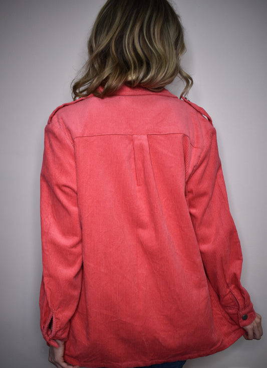 Pink Buttoned Flap Pocket Corduroy Jacket